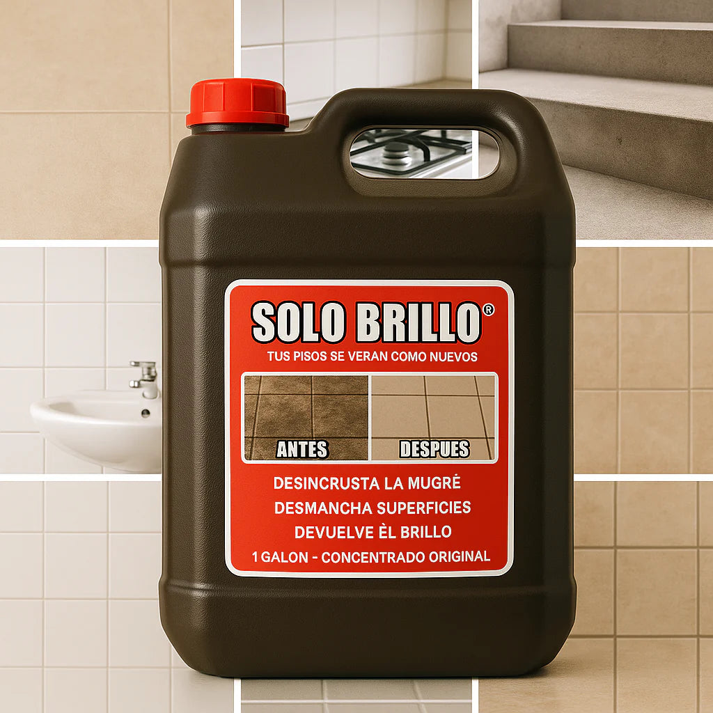 SOLO BRILLO® está especialmente diseñado para limpiar y cuidar tu cerámica, porcelanato, cemento, baños, cocinas, lavamanos, duchas y más.